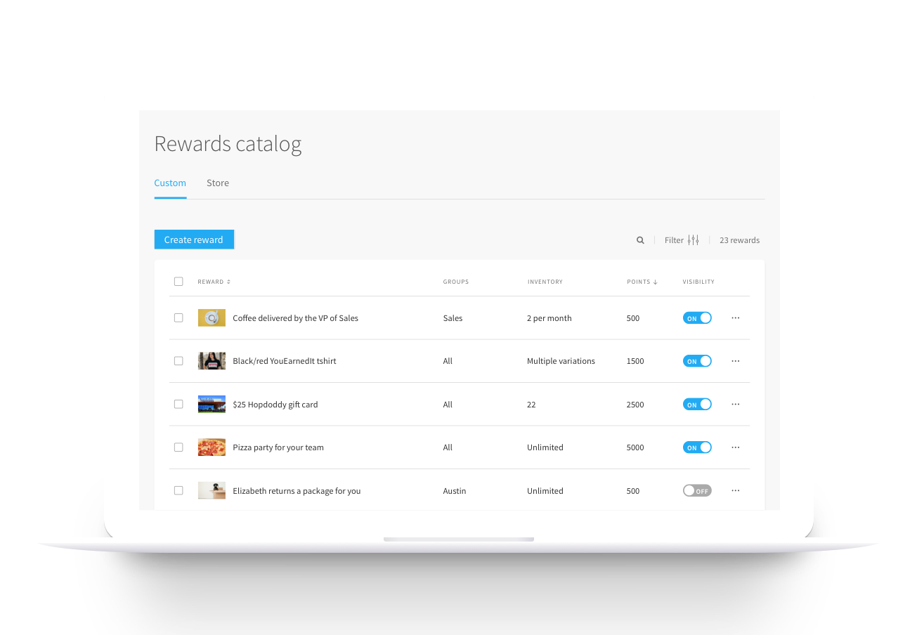 Despite store rewards making up a larger percentage of a company's catalog, custom rewards represent the bulk of management time, so I chose to put that tab first.